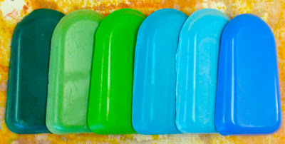 Above: The popular starter set, also called the Ultimate Mixing Palette. It's shown with each color painted on Color Charting.